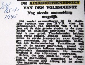 De in de Hongerwinter van 1944/1945 door de Nationale Volksdienst / Winterhulp.georganiseerde Kindertransporten vanuit de grote steden o.a. Utrecht, Rotterdam, Den Haag en Amsterdam naar de Noordelijke Provincies.